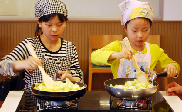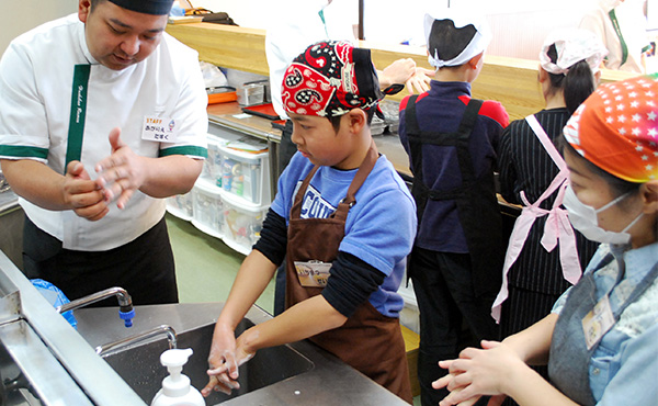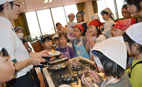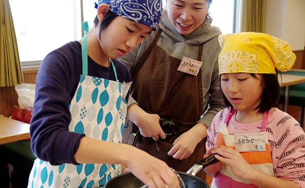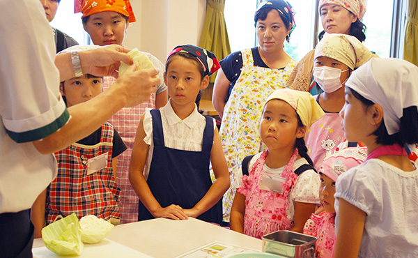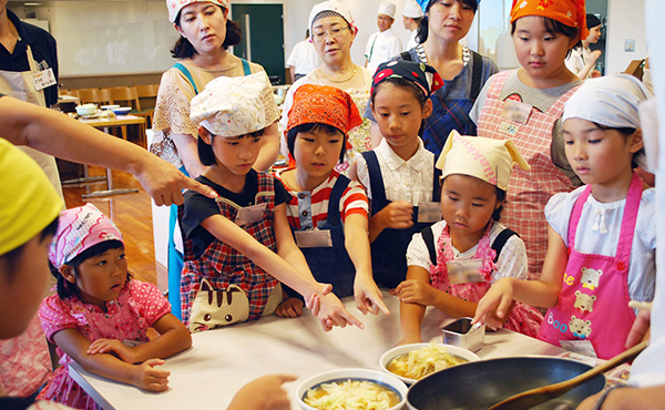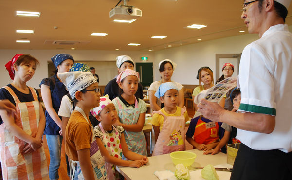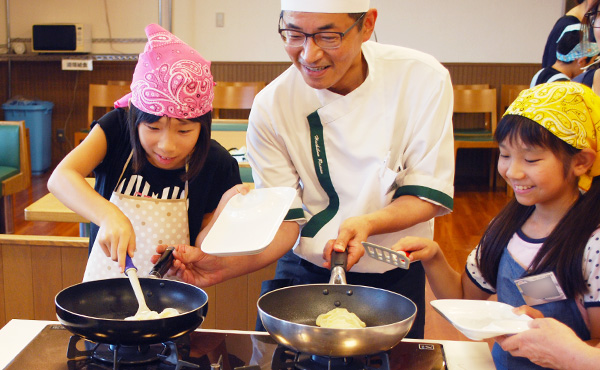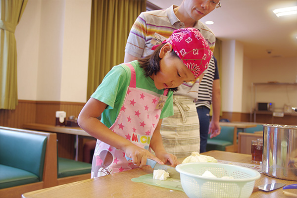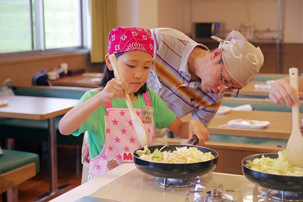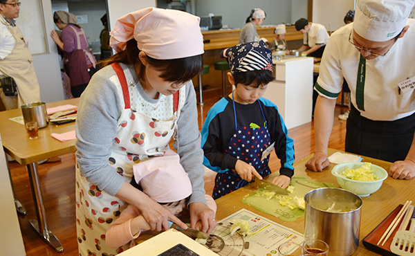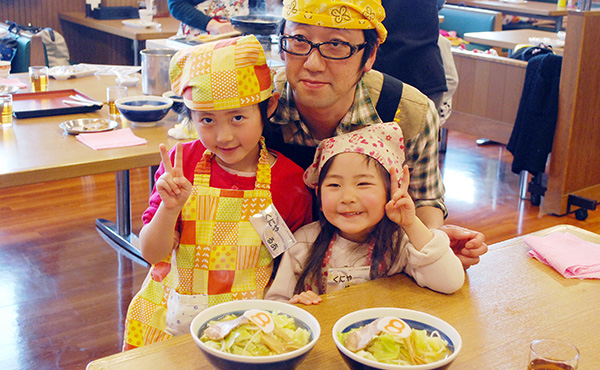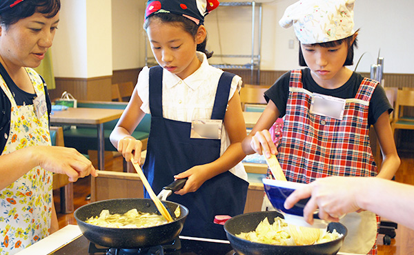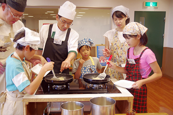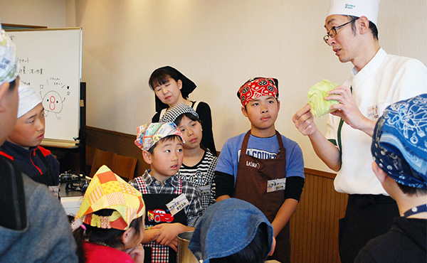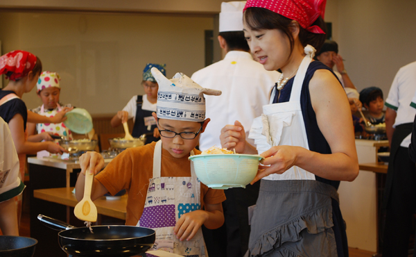 調理は、「らーめんマイスター」の称号を持つ当社社員が先生となって丁寧に教えます。野菜の切り方からラーメンを美味しく作る手順やコツ、失敗しない餃子の美味しい焼き方を知ってもらい、保護者の方々にも好評を得ています。