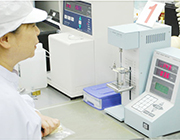 毎日、均一な規格で良い商品を提供するため、当社工場で製造している麺の厚みや強度、餃子・タレの塩分や糖分などを検査し、良品のみを出荷しています。常に安全な品質であることを保証している場所です。
