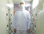 異物の原因となる毛髪や埃などを工場内に持ち込ませないよう、清浄なエアーで落とします。入荷口や出荷口にも各エアーシャワーを設置。人も物もすべてエアーシャワーを通過しないと工場内へは入れません。