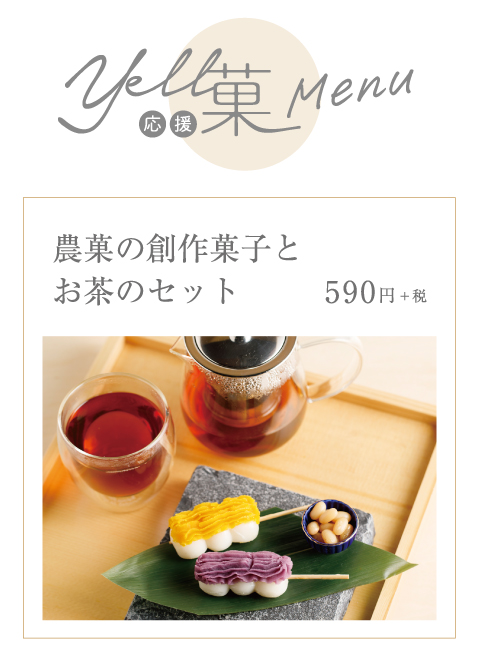 石川県内の農家と和菓子職人が、県産農産物を使用して創作菓子を作る任意団体『農菓プロジェクト』の新作和菓子の数々を、八兆屋2店舗(石川県庁前店、野々市矢作店)でお茶とセットで「Yell菓(応援菓)」として販売 。㈱ハチバングループの「地域の食を応援する取り組み」の一環として、「農菓プロジェクト」とはじめてコラボレーションします。