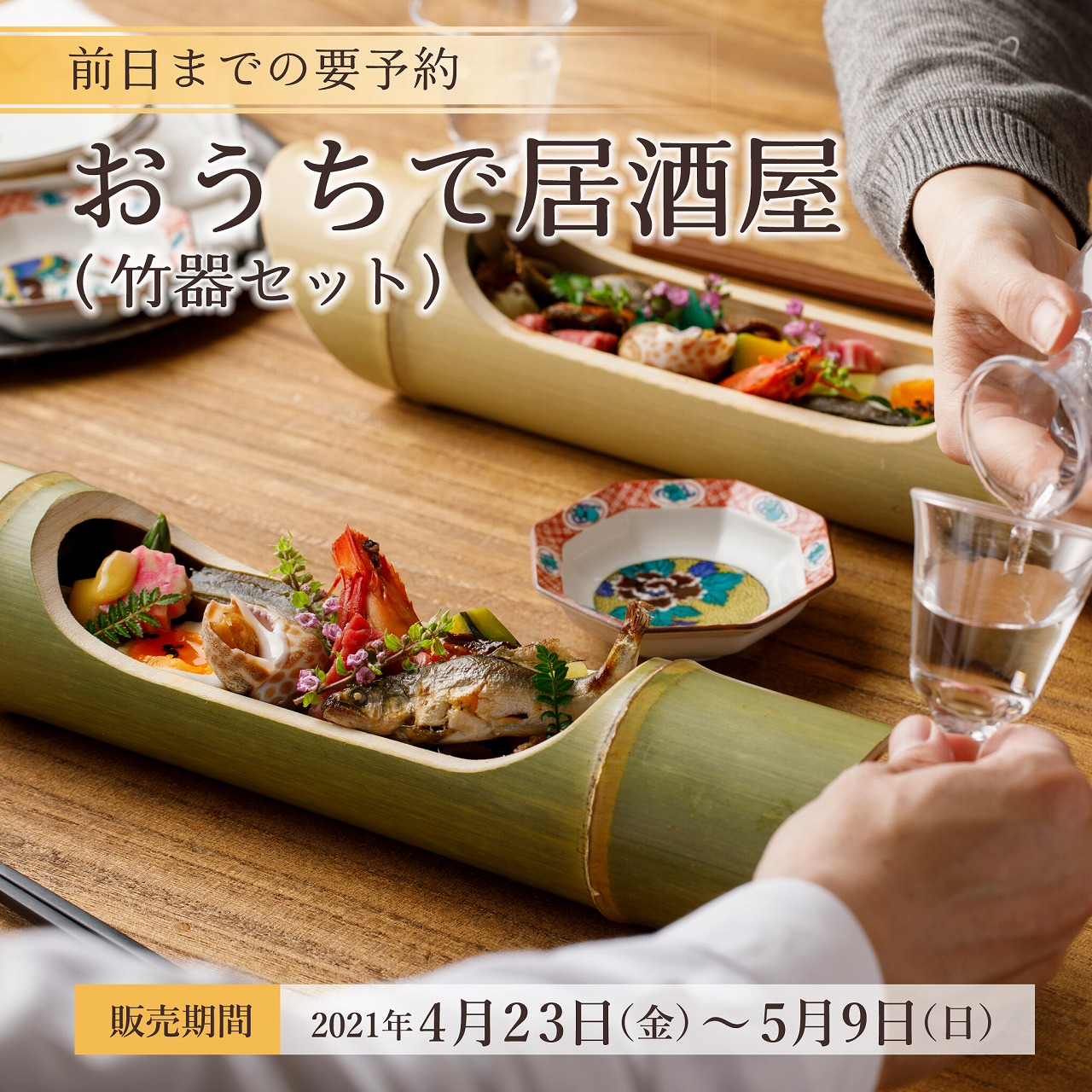 素材を生かした八兆屋ならではの居酒屋料理をコース仕立て(全9品)にし、1本の竹筒に納めました。今年のGWは、ご夫婦、ご友人、身近な方たちと、ご自宅で楽しいひとときをお楽しみください。