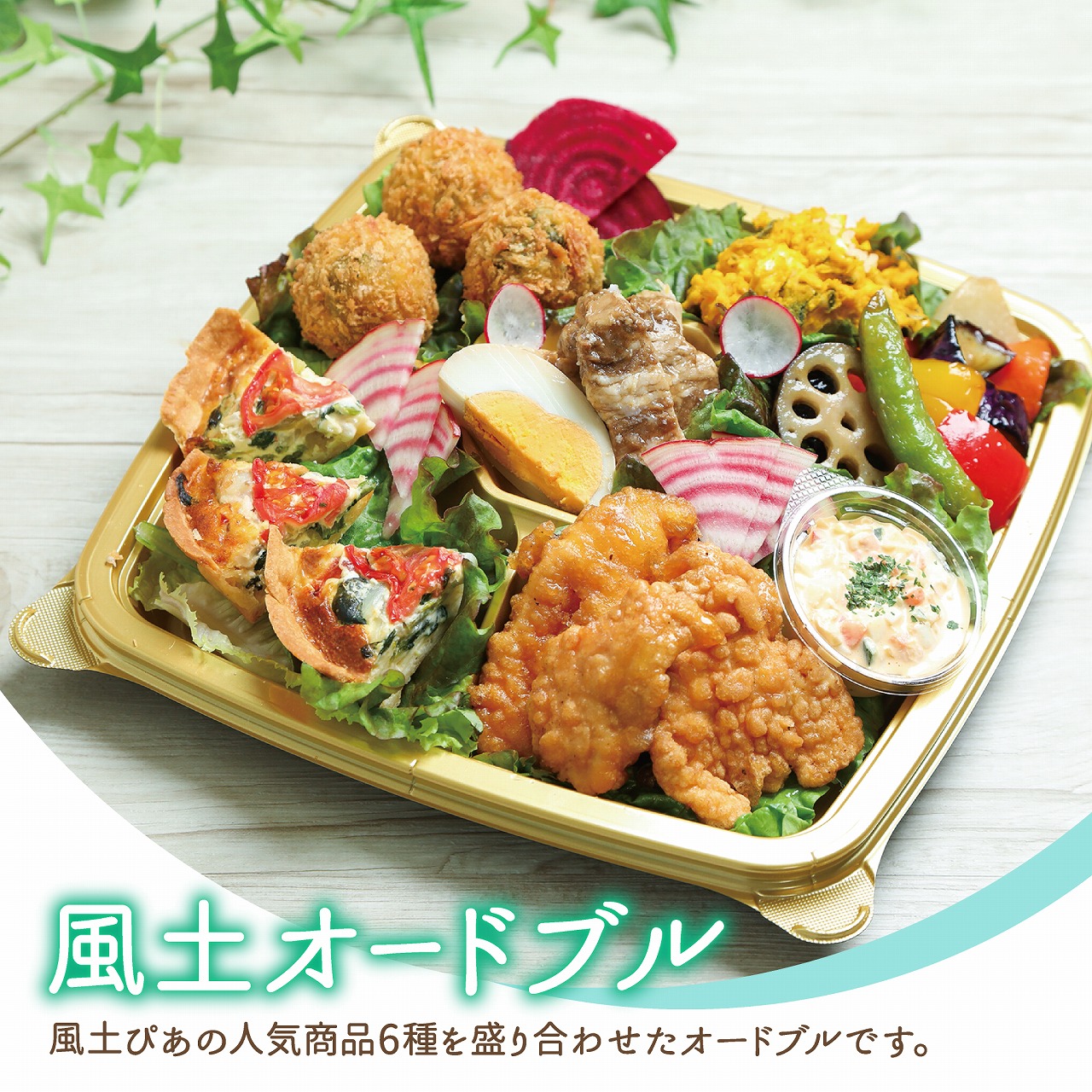風土ぴあでは、通年にわたり「オードブル」を販売中です。その時期の旬の食材を使った手作りメニューをお楽しみいただけます。
