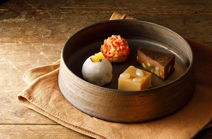 今回は、秋の創作和菓子メニュー4品のうち、3品が金沢大地の農産物加工品を使用して開発されました。和菓子職人の技が光る、石川の美味しいお菓子をお届けします。