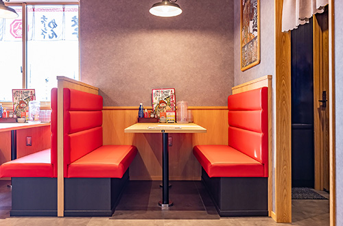 店内は、4人掛けテーブル8卓32席とカウンター18席の計50席。おひとりではもちろん、ご家族連れでも安心してご利用いただける空間を実現しました。