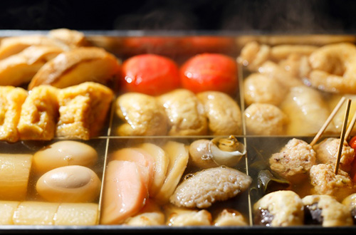 串焼きには、岐阜県産「恵那どり」を中心に、石川県のブランド和牛「能登牛」や「能登産豚」など厳選した国産素材を使用。上もも肉を使った「上ねぎま串」、希少な肩肉を使った「むねとろ串」、加賀れんこん入りの「つくね串」など、素材の個性と旨みを存分に引き出したプレミアム串も揃えています。名物の「知覧どりのかご焼き」は、長期450日飼育によるぷりぷりとした噛みごたえと、濃厚な旨みが特長のもも肉とむね肉を、豪快な炎で香ばしく焼き上げます。さらに、手羽先サミット2019でグランプリを受賞した「やきとり鳥珍や」監修の手羽先もご用意。ヤミツキになる味わいをぜひお楽しみください。また、野菜を豚肉で巻いた「野菜豚巻き串」は女性に人気です。そのほか、特製の出汁で味わう「金澤おでん」や「創作おでん」、期間限定の「金澤のおでん・香箱かにのかに面」、ご飯ものとして「恵那どりの親子丼」「恵那どりのひつまぶし」、、ご飯メニューも取り揃えています。